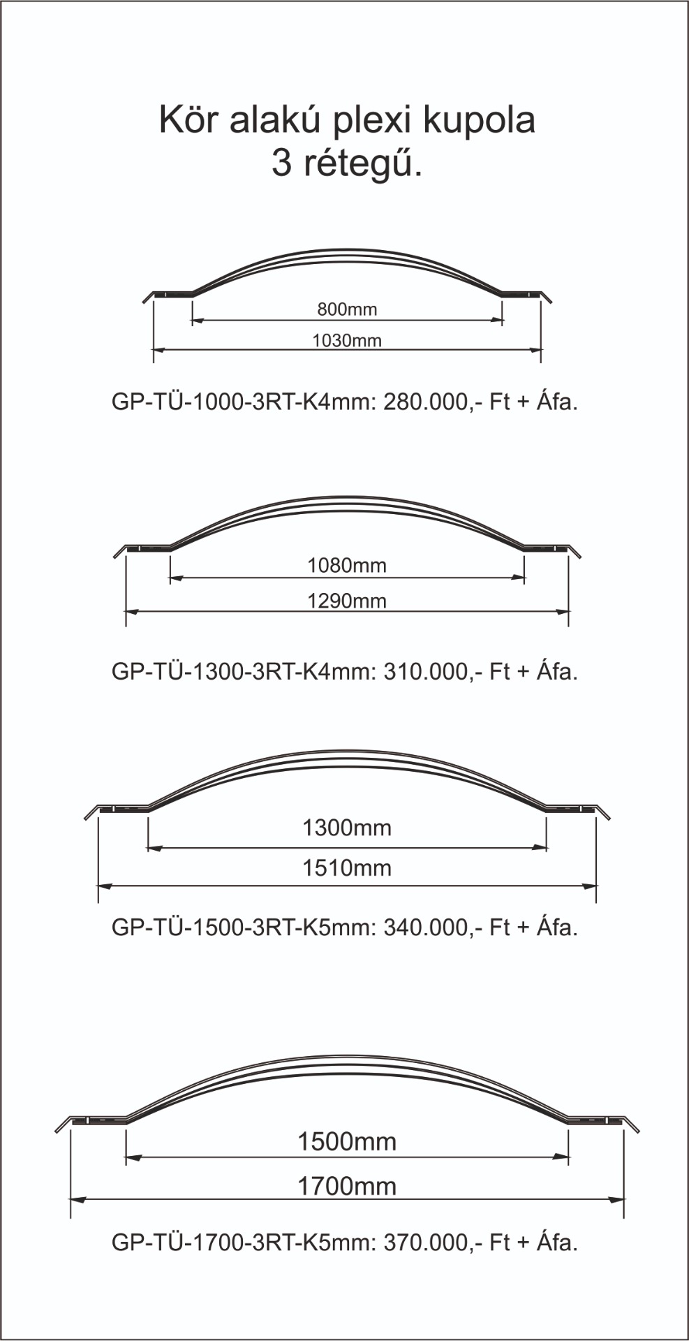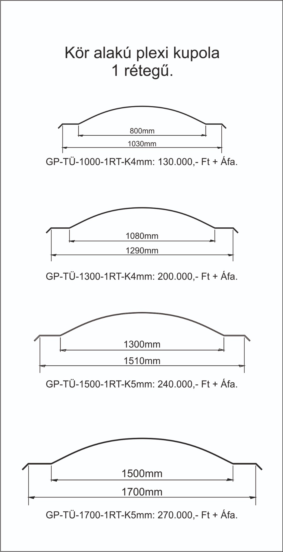 Plexi kupolák négyzetes és kör formákban, bármilyen méretekben.